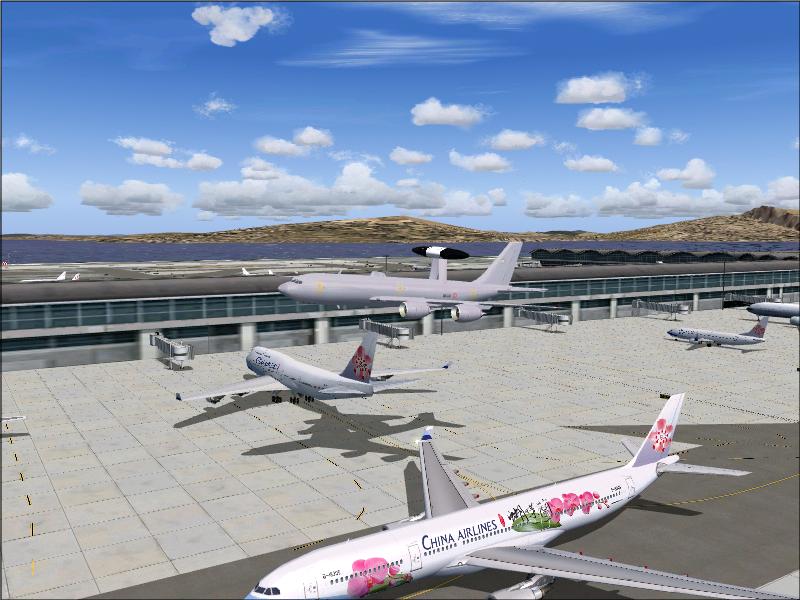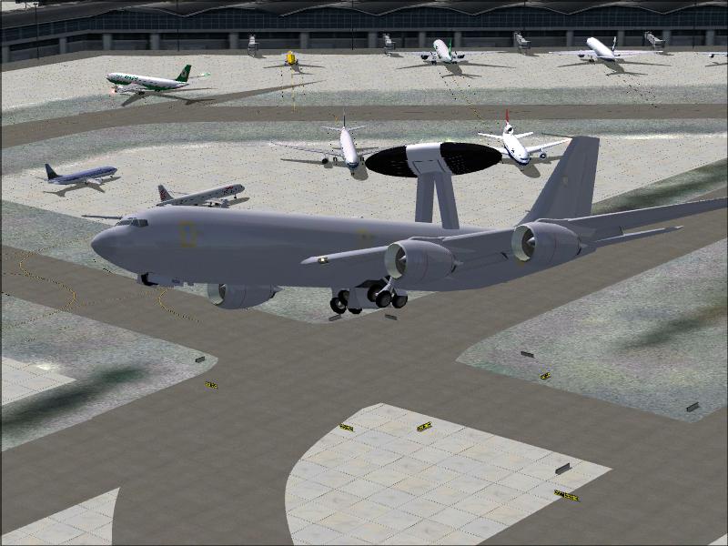 An early E-3 takes off from VHHH, a few AI planes in teh background.
