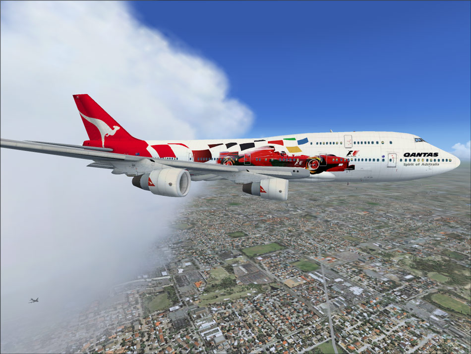 Qantas 747 flying into Melbourne for the big F1 race!