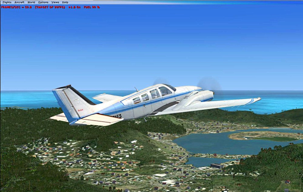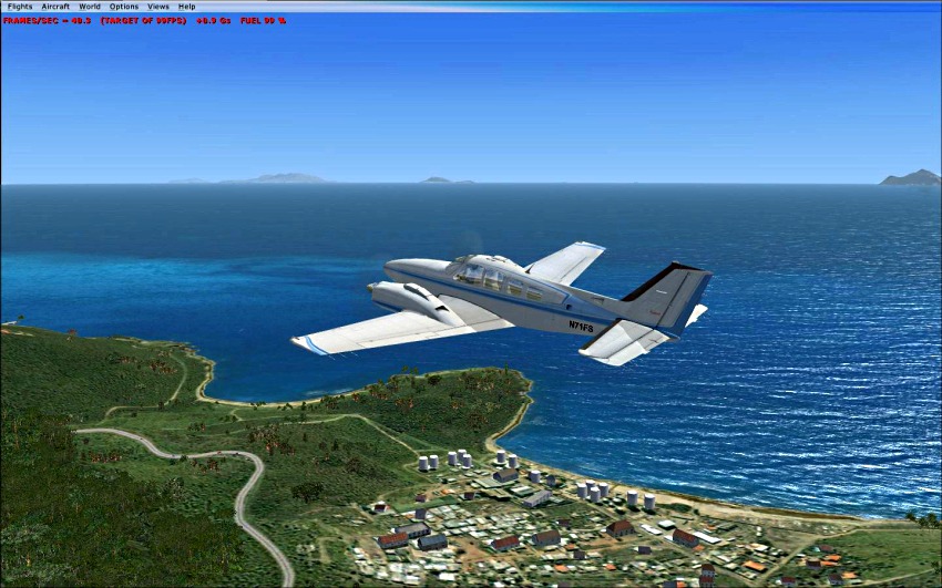 If nothing else, I can fly around the Netherlands Antilles enjoying the water and such on this demo. Too bad Microsoft didn't make some of those FSX features a retrofit for FS9